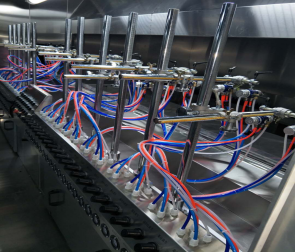 地軌式自動噴涂線介紹地軌式自動噴涂線也叫固定噴槍噴涂線或spindle自動噴涂線,原理就是把噴槍固定起來,根據(jù)工藝要求進(jìn)行噴涂。其功能集地面自動輸送線,固定自動噴涂,自動烘干T等一體化系統(tǒng),并結(jié)合無塵凈化車間,恒溫控制,廢氣處理系統(tǒng)組成,可以根據(jù)需求設(shè)計(jì)兩涂兩烤,三涂三烤,四涂四烤,再加上UV固化設(shè)備。地軌式自動噴涂線特點(diǎn)與優(yōu)勢:1.起到靜電除塵,噴涂、烘干、UV固化自動噴涂流水的功能,適合批量連續(xù)生產(chǎn),產(chǎn)量高,噴涂均勻。2.輸送鏈條與軌道接觸點(diǎn)配置軸承,配合精準(zhǔn)的軌道,運(yùn)轉(zhuǎn)時(shí)輕快平穩(wěn)不抖動,3.靜電除塵系統(tǒng),進(jìn)口高要靜電發(fā)生器,離子風(fēng)嘴可上下前后機(jī)械式調(diào)節(jié),可配合產(chǎn)品大小不同而變化,加上工件自動,除塵無360度死角。4.固定式自動噴槍可用于步進(jìn)是或者聯(lián)系的在線噴涂,及簡單又實(shí)用。采用工件高速自動噴涂,行程及速度可調(diào)節(jié),靈活性大,無死角。5.水簾環(huán)保噴房設(shè)計(jì),氣流順暢潔凈,噴房室內(nèi)導(dǎo)流板機(jī)擾流板的精心配置,讓亂流遠(yuǎn)離工件,并快速循環(huán)利用。6.UV固化室內(nèi)設(shè)都說進(jìn)口等,任意調(diào)節(jié)照射距離與角度。可以任意選擇燈工作數(shù)量,根據(jù)照射強(qiáng)度選擇,工件自動旋轉(zhuǎn)設(shè)計(jì),保證了工件照度均勻。好了,以上就是有關(guān)地軌式自動噴涂線介紹,大家學(xué)會了嗎?